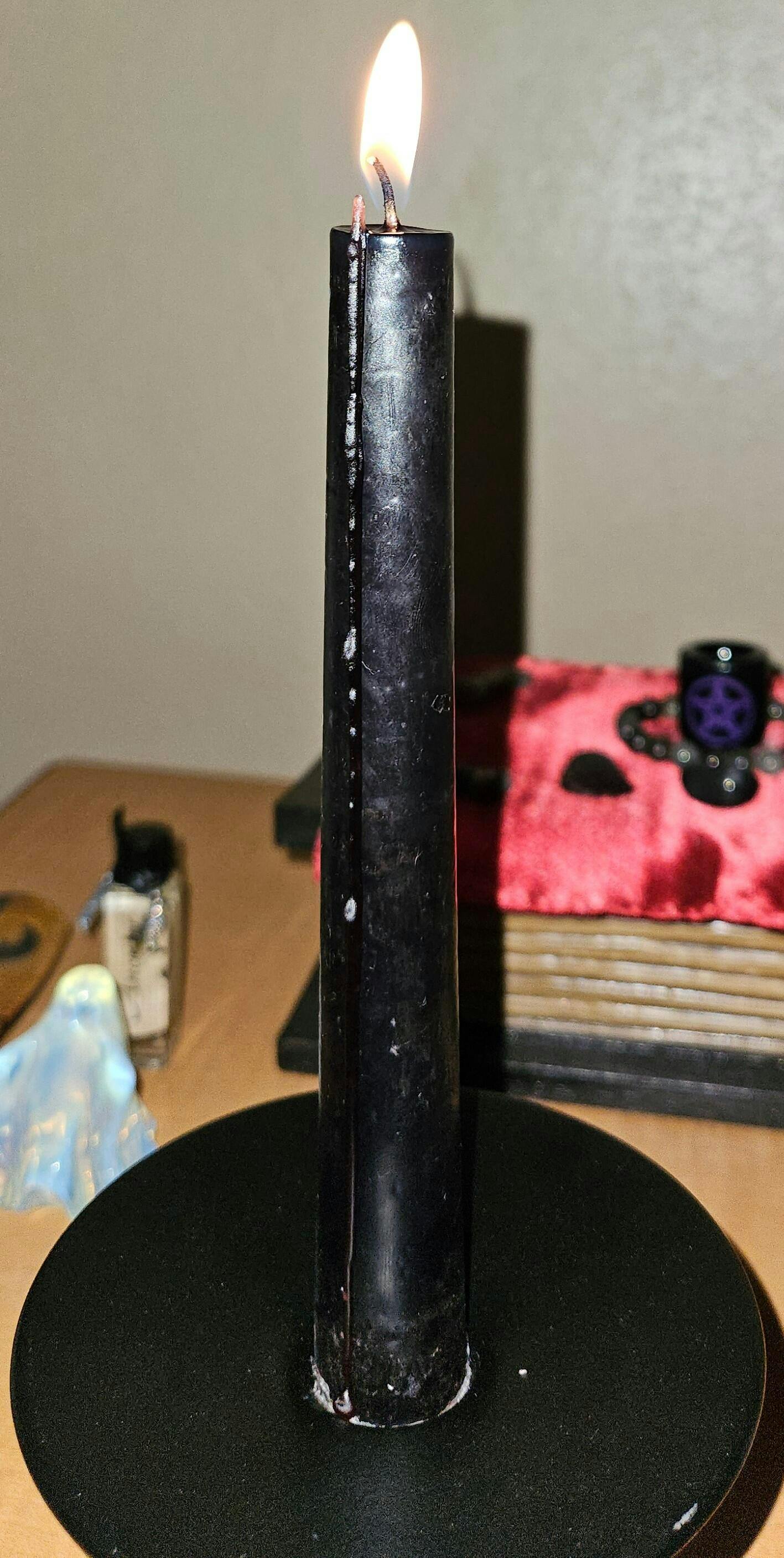 Such a unique black taper candles. The wax melts into a dark red color. I thought it would be more of a vivid red color wax... but it's still pretty cool to look at! 😎 Thanks! :)